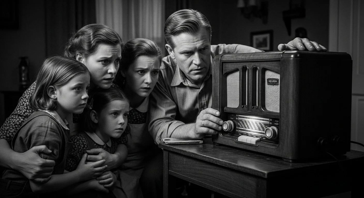 Let me explain - it’s a large bakelite box in the living room that the family clusters around of an evening in the 1930s to hear declarations of war delivered through crackles and static. Everyone is wearing a cardigan; some will have pipes in their mouths.