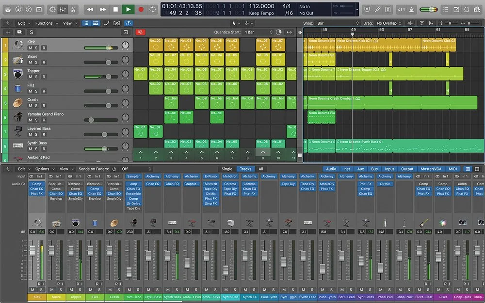 Loops are sort, pre-made measures of music (drums, vocals, bass, keys, etc) that can be used as building blocks in compositions. In Apple’s Logic Pro there are thousands of them on hand, and they are ‘royalty free,’ which means that you can legally use them in your commercial releases. Other companies such as Splice or Arcade provide similar ready-made chunks of music that can be thrown into a song.
