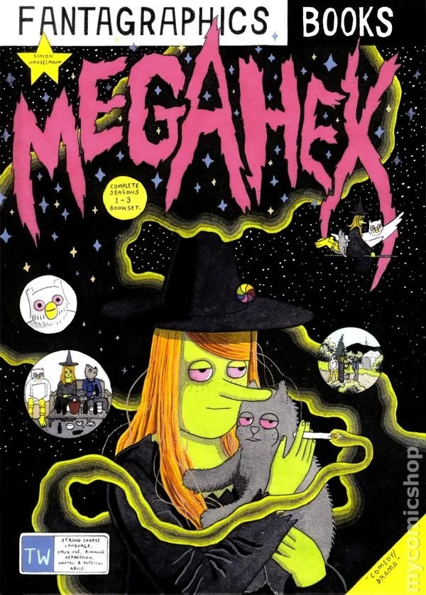 This comic features a house of unemployed slackers who just happen to be a green witch, a talking cat and a large talking owl. They sit around their filthy house being mean to each other, getting stoned and drinking a lot. This is quite a graphic graphic novel - some people might well be offended by some of the things that happen. It’s certainly not for the squeamish. My initial thoughts were that while I don’t mind the crudity, there’s never actually much happening in the way of plot or story. It seemed like it was trying to be ‘edgy’ just for the sake of it, which is not something I’m really into. Reminds me of those really bad comedians of the last couple of decades who think that shouting obscenities is somehow a substitute for actual jokes or witticisms. Or the work of Charles Bukowksi - I never got the point of that kind of stuff. Also, I had to ask myself - if the three main characters of Megahex were just normal people and not a witch, cat and owl, would anyone want to read it?